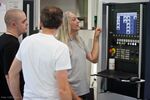 Wie man an den zufriedenen Mienen ablesen kann, klappt das richtig gut. Ich habe mir sagen lassen, dass das auch mit den sog. NURBS (nicht-uniforme rationale B-Splines) zu tun hat. NURBS sind mathematische Formeln, mit denen sich, ganz vereinfacht gesagt, beliebige Flächen mit relativ wenigen Kontrollpunkten darstellen lassen. Unsere neue Schleifsoftware kann dank NURBS Freiformflächen, z.B. bei Turbinenschaufeln, direkt aus 3D-CAD-Systemen verarbeiten. Diese können dann, wie hier auf einer Multigrind® CA, aufs µm genau geschliffen werden.